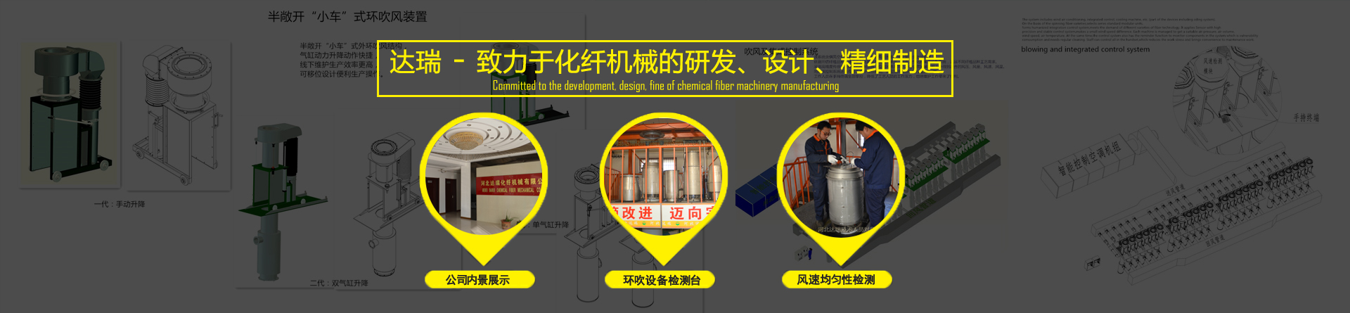 河北達(dá)瑞化纖機(jī)械有限公司,自2004年注冊(cè)成立以來,已為國(guó)內(nèi)、外百余家大中型化纖企業(yè)和工程公司提供了產(chǎn)品或服務(wù)。公司致力于化纖機(jī)械的研發(fā)設(shè)計(jì)和精細(xì)制造。憑借多年行業(yè)經(jīng)驗(yàn)積累,公司擁有了一支設(shè)計(jì)及生產(chǎn)現(xiàn)場(chǎng)經(jīng)驗(yàn)豐富的技術(shù)團(tuán)隊(duì)和高水平員工隊(duì)伍。特別是本公司生產(chǎn)的“絲束冷卻吹風(fēng)裝置”及相關(guān)設(shè)備得到了國(guó)內(nèi)外用戶的高度認(rèn)可,具有很強(qiáng)的競(jìng)爭(zhēng)優(yōu)勢(shì)。……